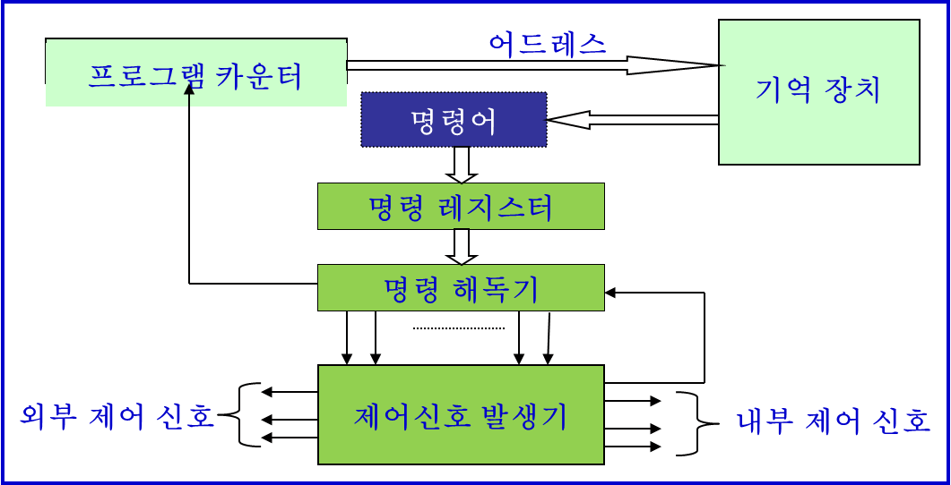 명령을 읽고 실행하기 위한 내부 데이터 흐름 제어