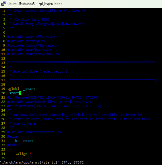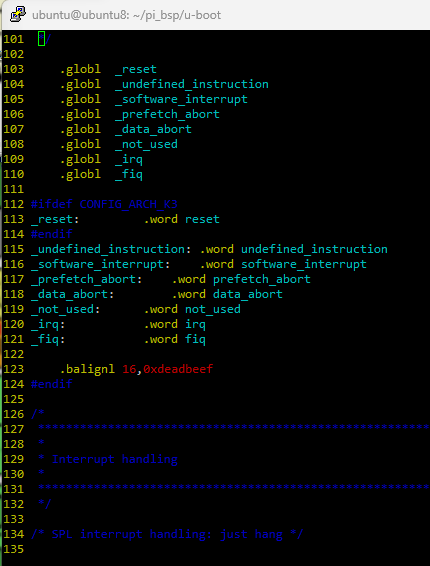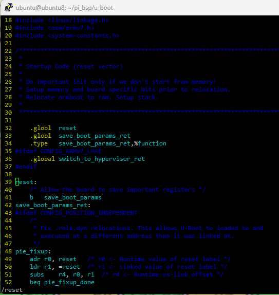 ubuntu@ubuntu8:~/pi_bsp/u-boot$ vi arch/arm/cpu/armv7/start.S