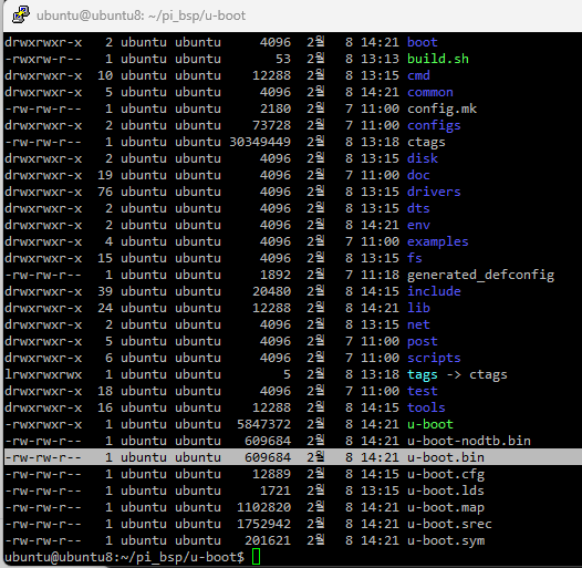 ubuntu@ubuntu8:~/pi_bsp/u-boot$ chmod u+x build.sh