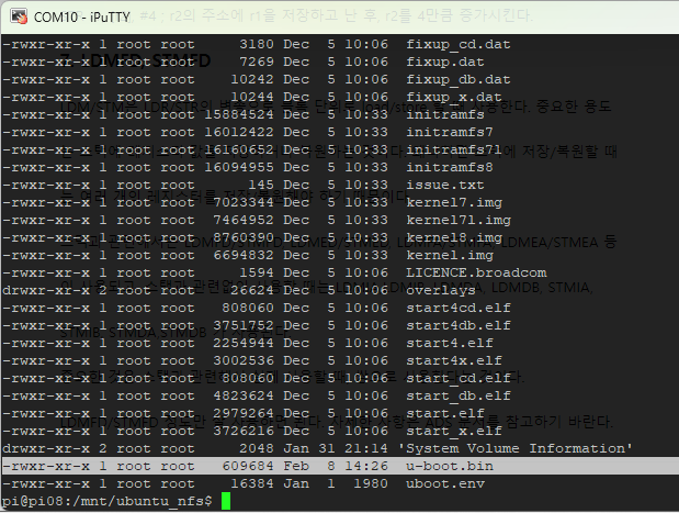 nfs로 sudo cp u-boot.bin /boot/firmware/. 로 넣어주고 라즈베리파이 serial putty로 재부팅해주면 되는거임.