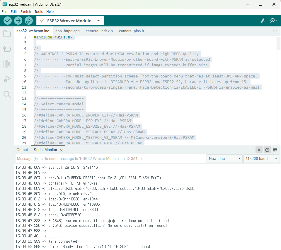 // Ensure ESP32 Wrover Module or other board with PSRAM is selected