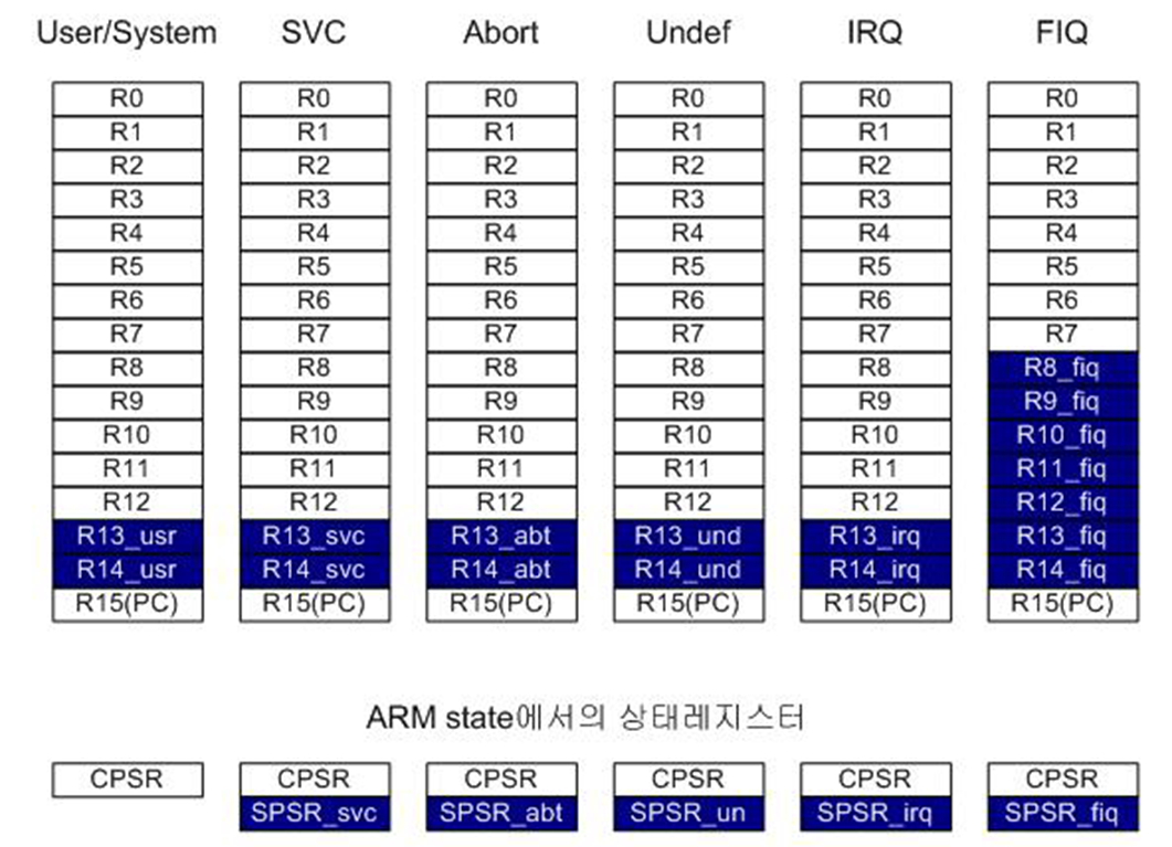 | 10001 | FIQ 모드 | 11011 | Undefined 모드 |