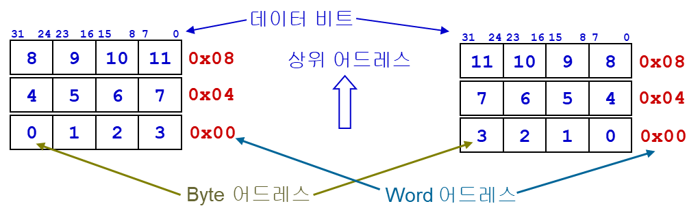 0,4,8은 word 어드레스, 0,2,4,6,8,10은 halfword 어드레스, 0,1,2,3,4,…은 byte 어드레스를 니타낸다.