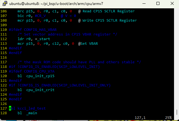ubuntu@ubuntu8:~/pi_bsp/u-boot$ vi arch/arm/cpu/armv7/start.S