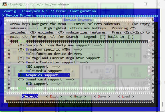 ubuntu@ubuntu8:~/pi_bsp/kernel/linux$ make ARCH=arm CROSS_COMPILE=arm-linux-gnueabihf- menuconfig