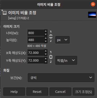 좌클릭 -> 이미지 -> 이미지 크기조정