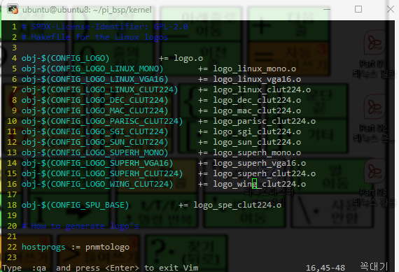 ubuntu@ubuntu8:~/pi_bsp/kernel$ vi linux/drivers/video/logo/Makefile