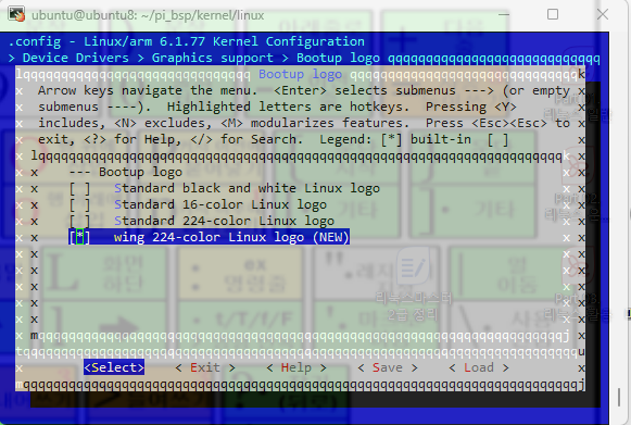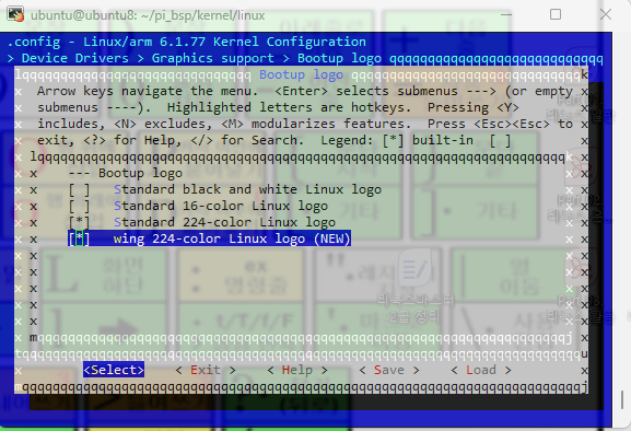 ubuntu@ubuntu8:~/pi_bsp/kernel$ cp logo_wing_clut224.ppm linux/drivers/video/logo/