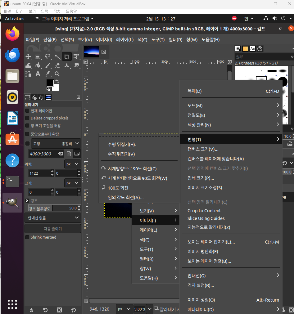 gimp 열고나서 이미지 드래그해서 넣어주고 열고 회전하고 크기 조절해주면 됨.