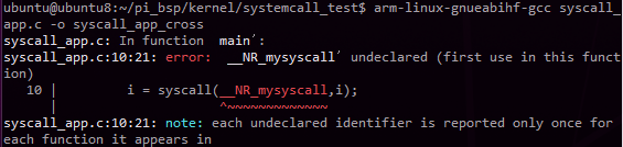 ubuntu@ubuntu8:~/pi_bsp/kernel/systemcall_test$ arm-linux-gnueabihf-gcc syscall_app.c -o syscall_app