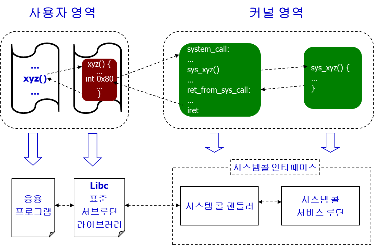 소프트웨어 인터럽트를 통해 커널에 서비스를 요청하는 것.