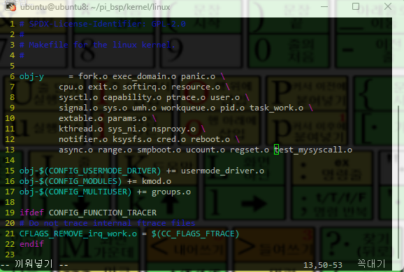 ubuntu@ubuntu8:~/pi_bsp/kernel/linux$ vi kernel/Makefile