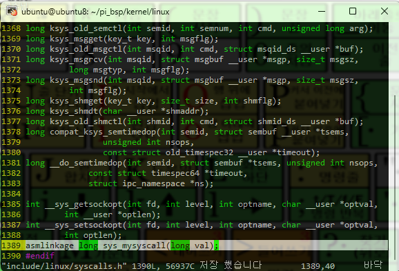 ubuntu@ubuntu8:~/pi_bsp/kernel/linux$ vi include/linux/syscalls.h