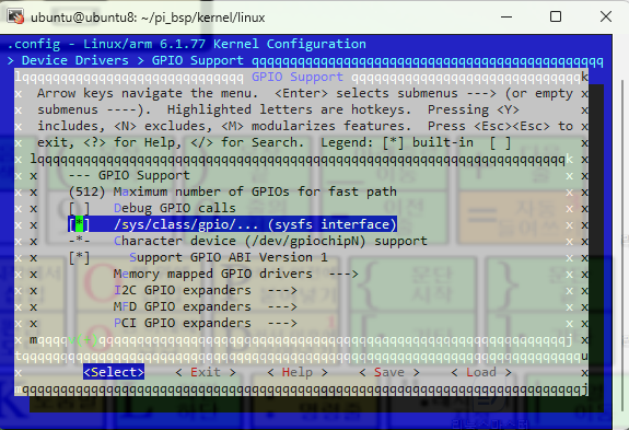 고로 gpio를 menuconfig에서 해제시켜준다.