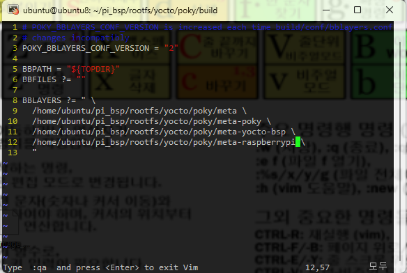 ubuntu@ubuntu8:~/pi_bsp/rootfs/yocto/poky/build$ vi conf/bblayers.conf