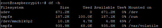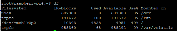 df를 쳐보면 확장되지 않은 sd카드의 전체 용량에 비해 매우 적은 메모리가 보일거임.