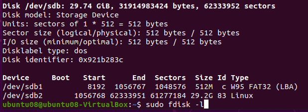 /dev/sdb2 29G 156K 28G 1% /media/ubuntu08/rootfs