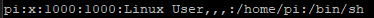 pi:x:1001:1001:Linux User,,,:/home/pi:/bin/sh
