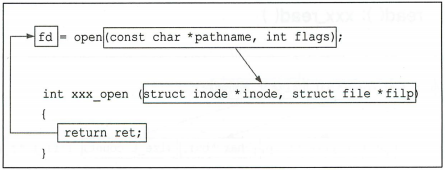 applitaion 단계에서는 *pathname, flags 2개가 들어가지만 커널의 시스템 콜 함수를 거쳐서 *inode, *filp 2개의 다른 값으로 들어가게 되는거임.