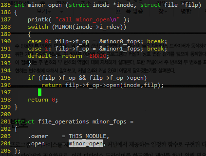 dev.c에서 minor_open으로 넘어가는데,