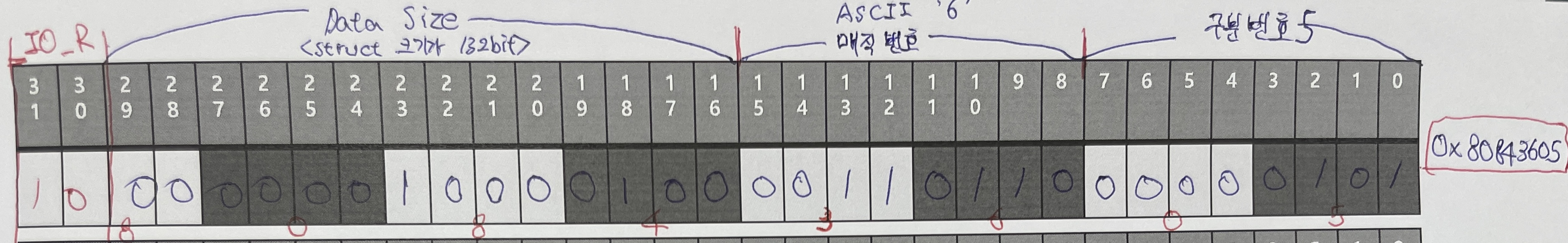_IO는 최상위 비트가 00 자료형 안들어가므로 14bit는 다 0 하위 8bit 2개 (매직번호, 구분 번호)