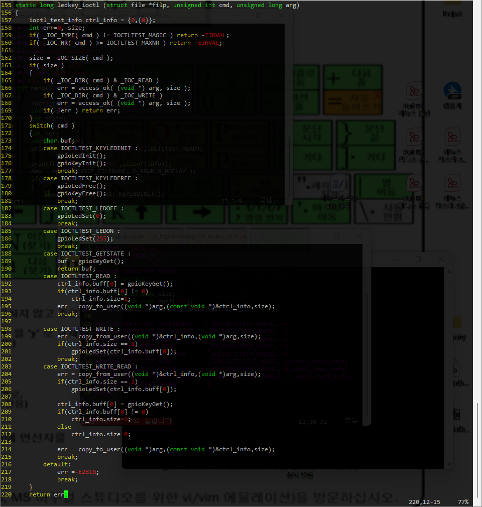 dev 쪽에 보면 하드웨어 제어하는 부분을 다 ioctl로 하기 위해 주석처리 해놓았음.