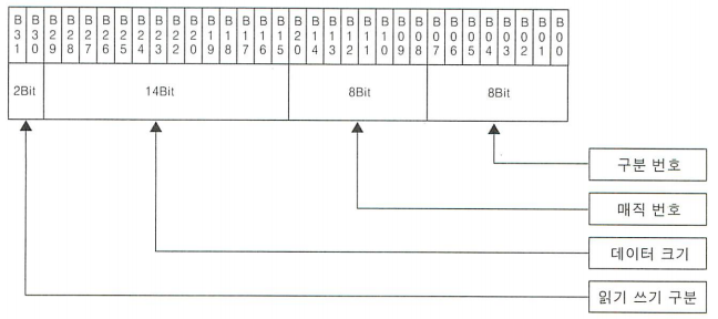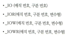 _IO는 최상위 비트가 00 자료형 안들어가므로 14bit는 다 0 하위 8bit 2개 (매직번호, 구분 번호)