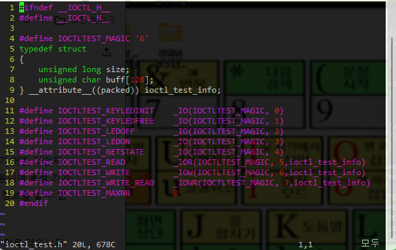 11번 라인의 #define IOCTLTEST_KEYLEDINIT _IO(IOCTLTEST_MAGIC, 0) => 0x00003600