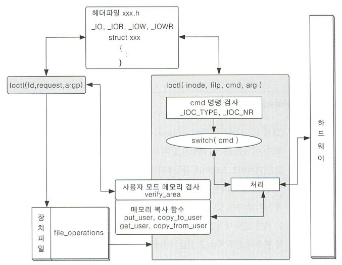 ioctl 함수는 read write로 할 수 없는 io control 역할 수행.