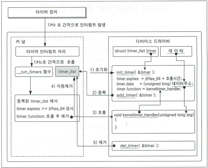 일정 시간이 지나면 커널이 handler 함수를 3) 호출 후 4)list에서 제거 (1회성임, 계속 호출하고 싶으면 다시 등록해줘야됨.)