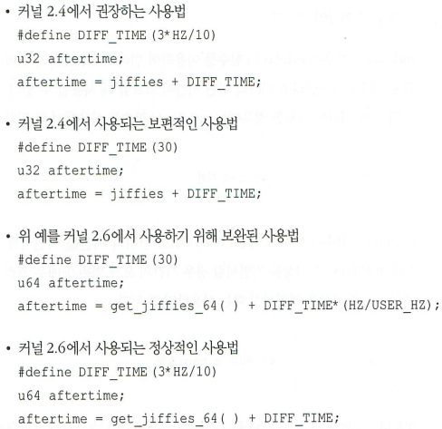 이때 리눅스 커널은 jiffies_64(커널 2.4에서는 jiffies)라는 전역변수를 통해 커널 전체에 동일한 기준 시간값을 제공한다.