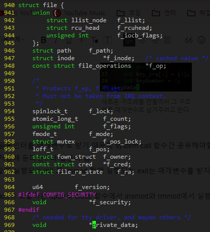 같은 파일의 파일포인터를 매개변수로 받기 때문에 system call 함수간 공유해야할 데이터가 있다면, 파일 포인터의 어딘가에 데이터를 저장해 둔다면? 다 접근이 됨.