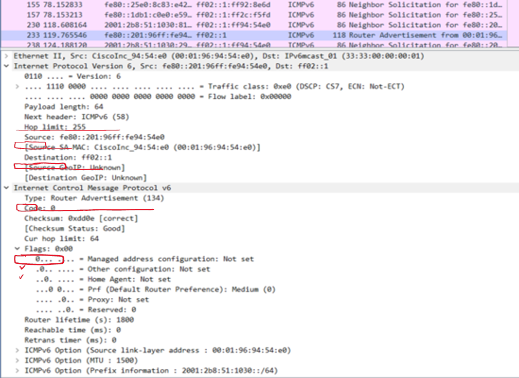 RA 메세지 패킷 구조