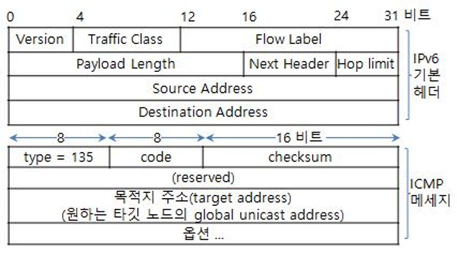 - NS (Neighber Solicitation, 이웃 간청) : type 135