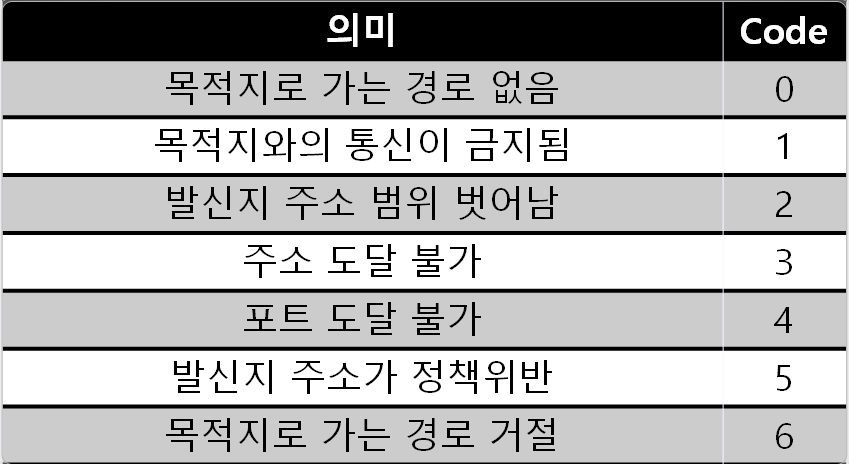 •Destination Unreachable(목적지 도달 불가)