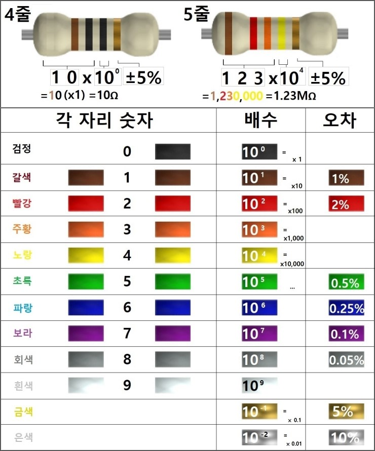 100Ω = 갈 1 흑0 갈1 / 적 2 적 2 갈 1 = 220Ω / 적2 흑0 적2 = 2kΩ