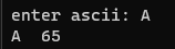 printf("enter ascii: ");