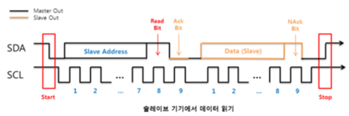 *I2C 통신의 장점으로는 GPIO 포트 사용감소로 인한 회로 복잡도 감소, 다른 장치 연결가능