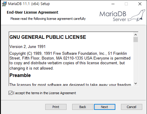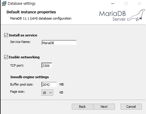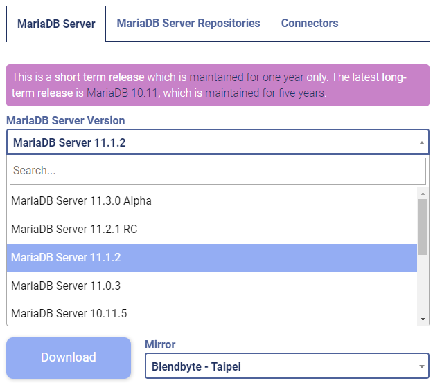 maria db 11.1.2 stable한 버전으로 받아줍니다