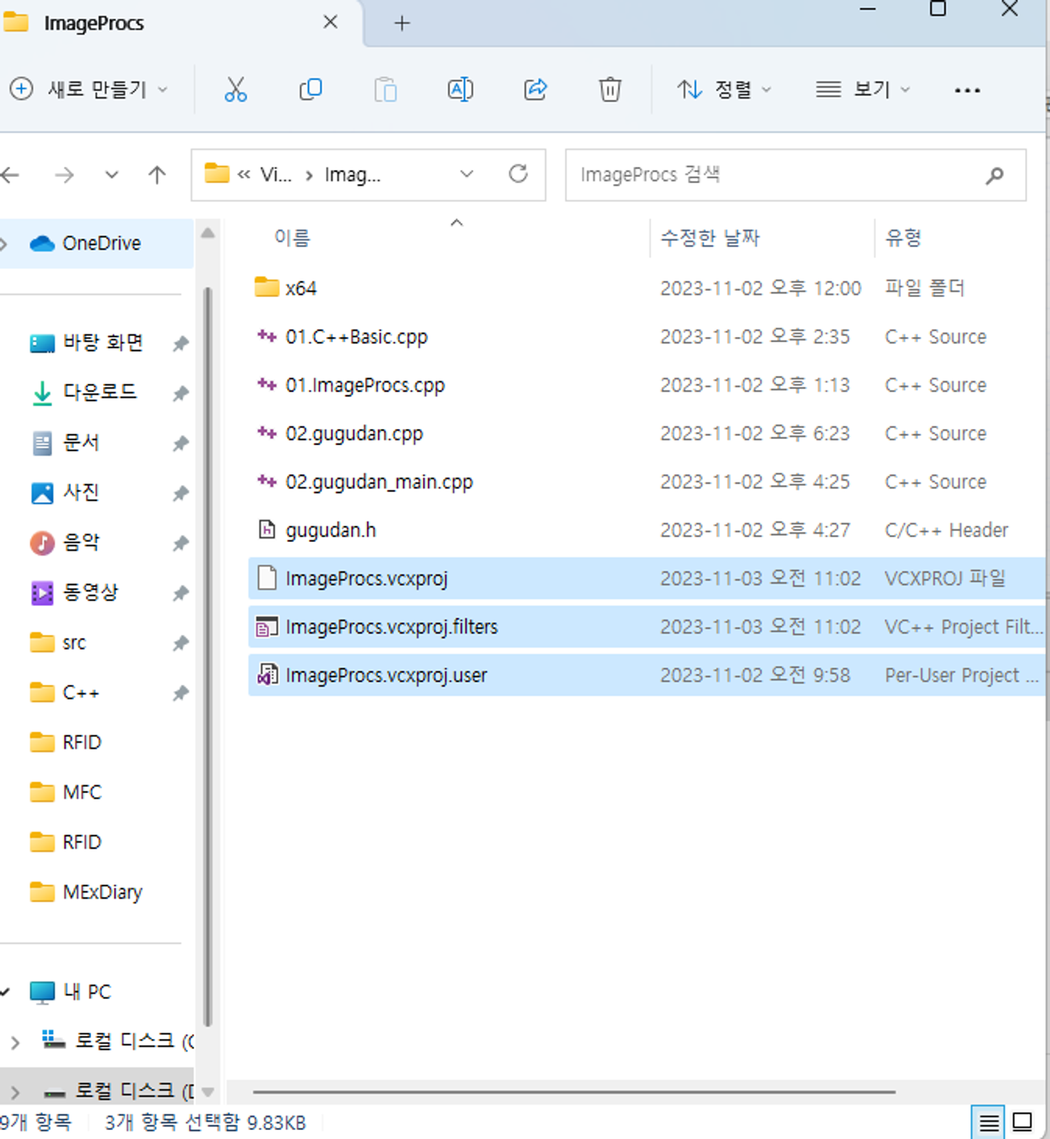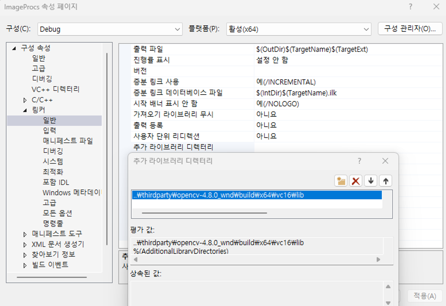 프로젝트 속성→C/C++→링커→입력→추가종속성 추가(..\thirdparty\opencv-4.8.0_wnd\build\x64\vc16\lib안에 lib파일 2개)를 해야하지만 이런식으로 추가하면 프로젝트 추가할때마다 계속 추가해줘야됨. 그래서 헤더파일 하나 만들어서 사용할 헤더파일들 다 복사해서 넣어줌 넣어야 할 파일은 아래에 있다.
