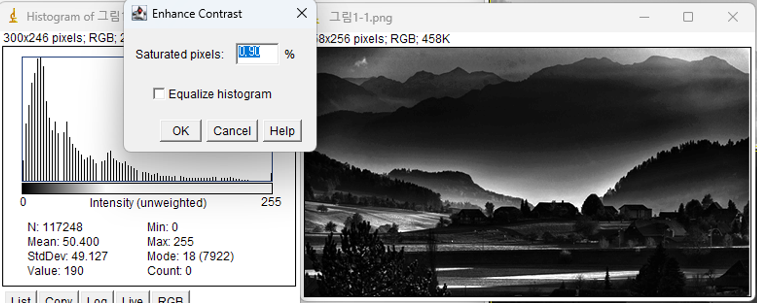 //밝은 곳과 어두운 곳의 contrast가 기존에는 180이라면 enhancement 후에는 200정도로 늘어남