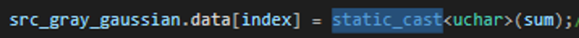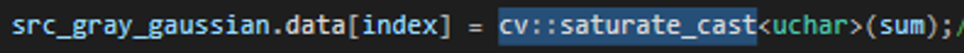 src_gray_gaussian.data[index] = cv::saturate_cast<uchar>(sum);//filter를 거친 값들을 uchar로 변환해서 src_gray_blur에 넣어준다.