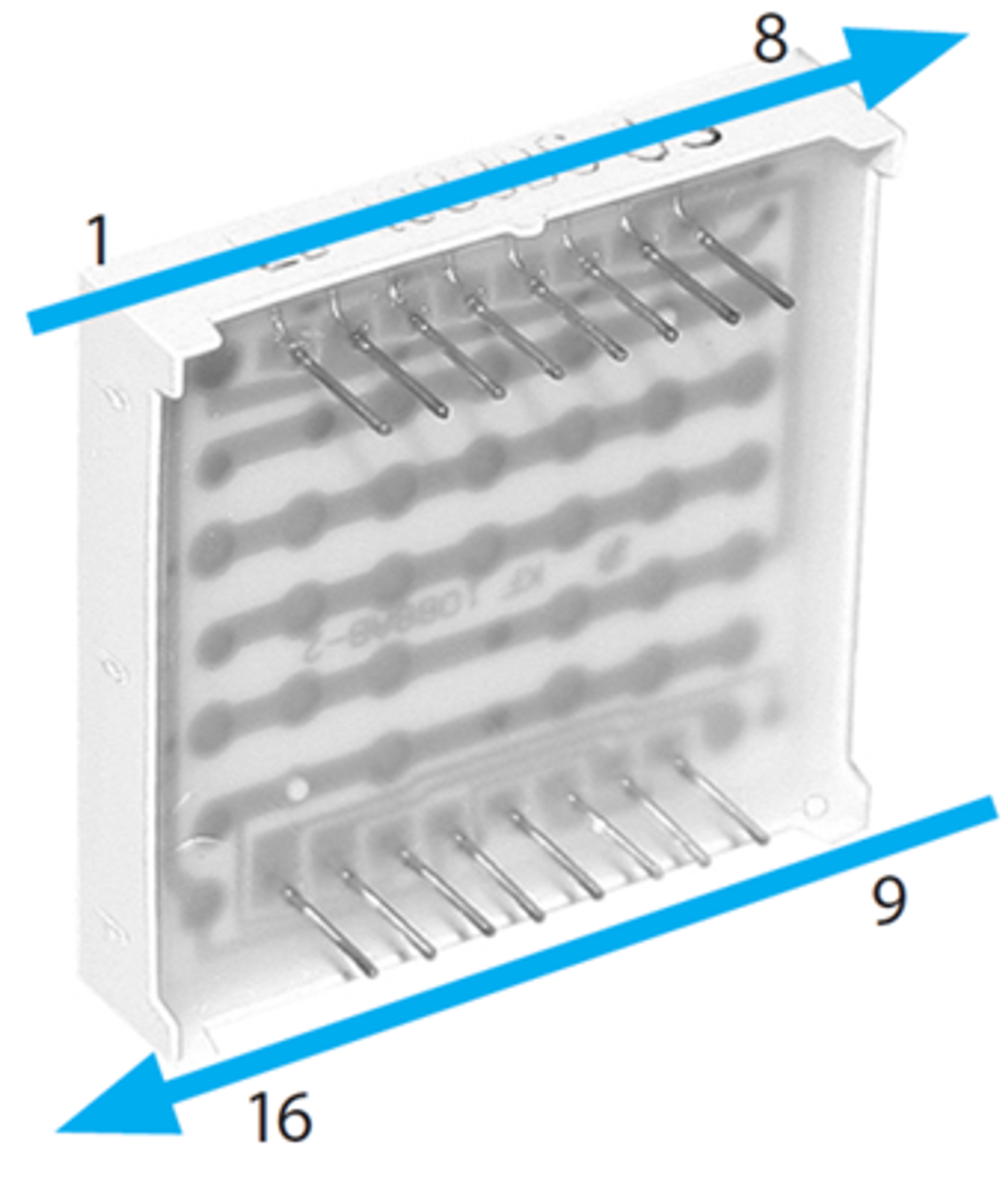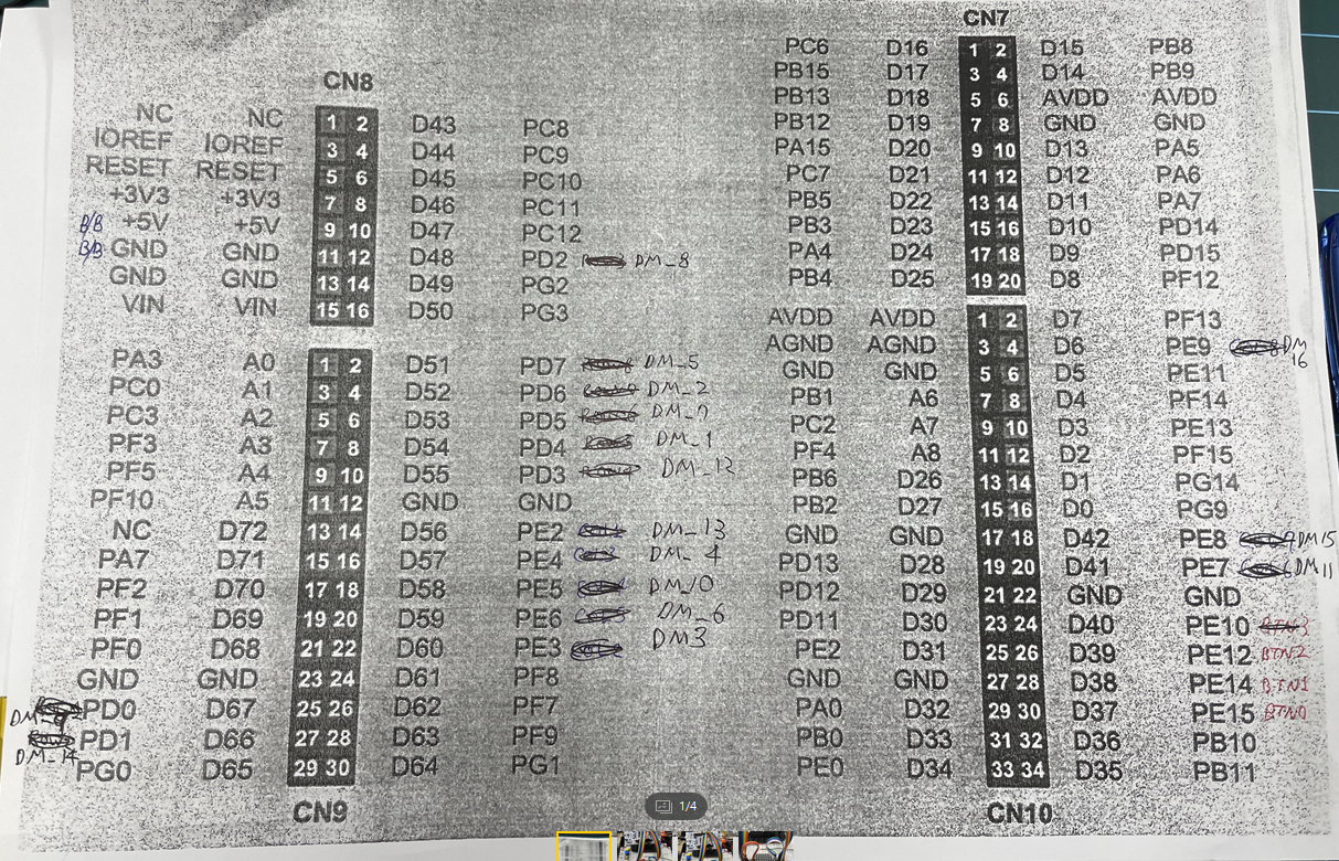 pin9 -> PD0 / pin10 -> PE5 / pin11 -> PE7 / pin12 -> PD3 / pin13 -> PE2 / pin14 -> PD1 / pin15 -> PE8 / pin16 -> PE9