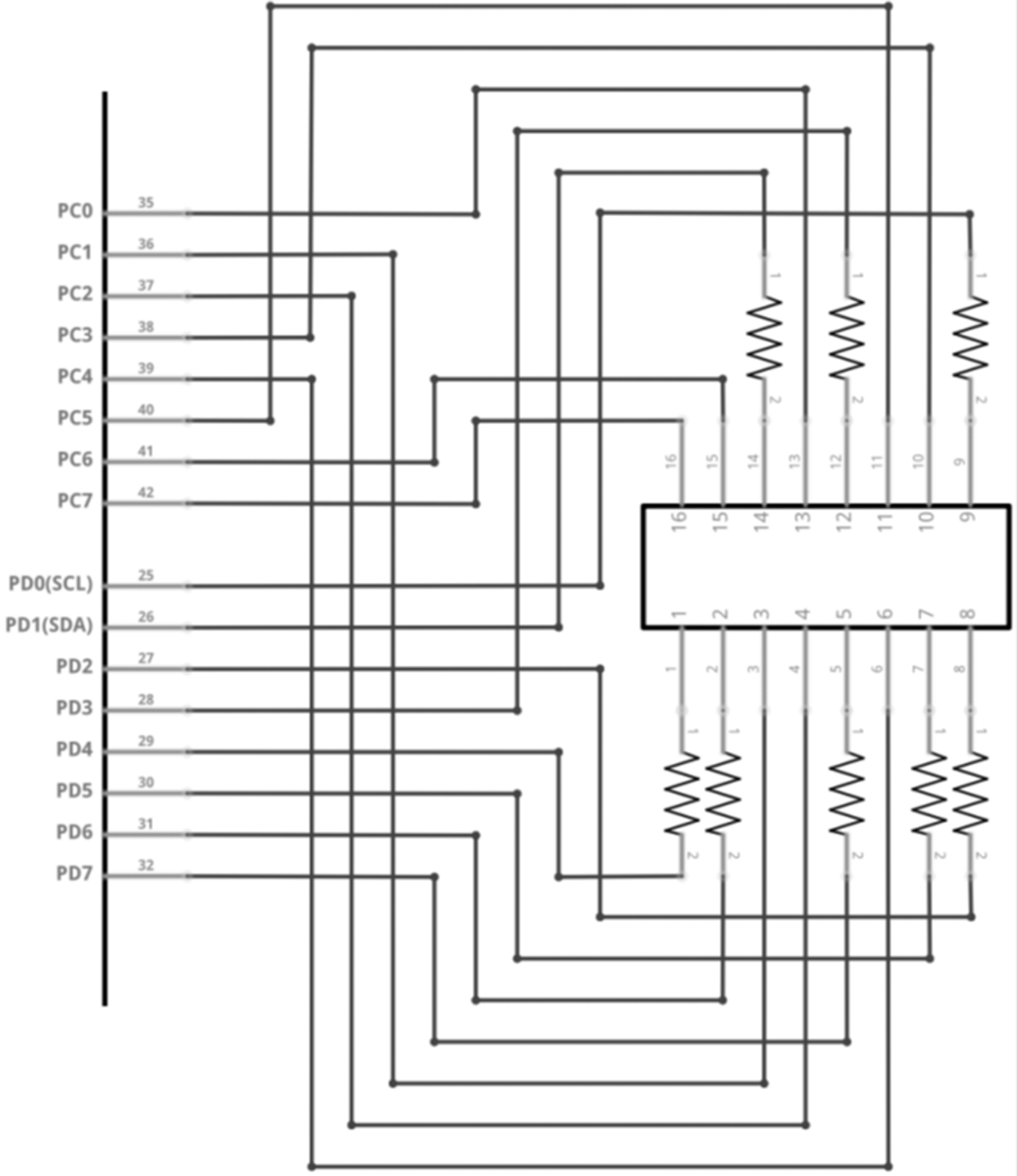 pin1~8이 그림 상에는 PD0~PD7로 나와있고, pin9~16이 그림 상에는 PC0~PC7로 나와 있다.