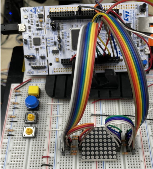 자 이제 main.h에 가서 #include "dotmatrix.h"를 해주고, main.c의 main문에 while(1) 내부에 dotmatrix_main_test();를 추가해주면 된다.