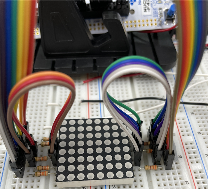 비트 시프트 연산을 활용해서 8x8 matrix의 dot를 표현할 것이기 때문에 핀은 인접한 핀들로 해주어야 한다.