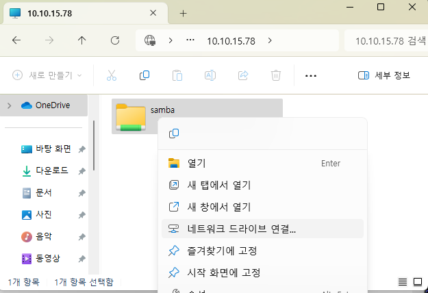 이제 samba server(공유 폴더 samba라고 하면 windows와 linux혹은 windows와 unix 다른 os간 사용)를 설치