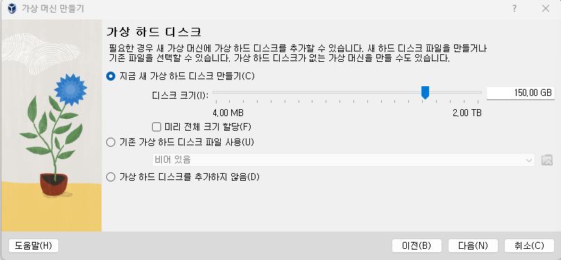 5.하드디스크 : 150Gb(최소 40~50GB)