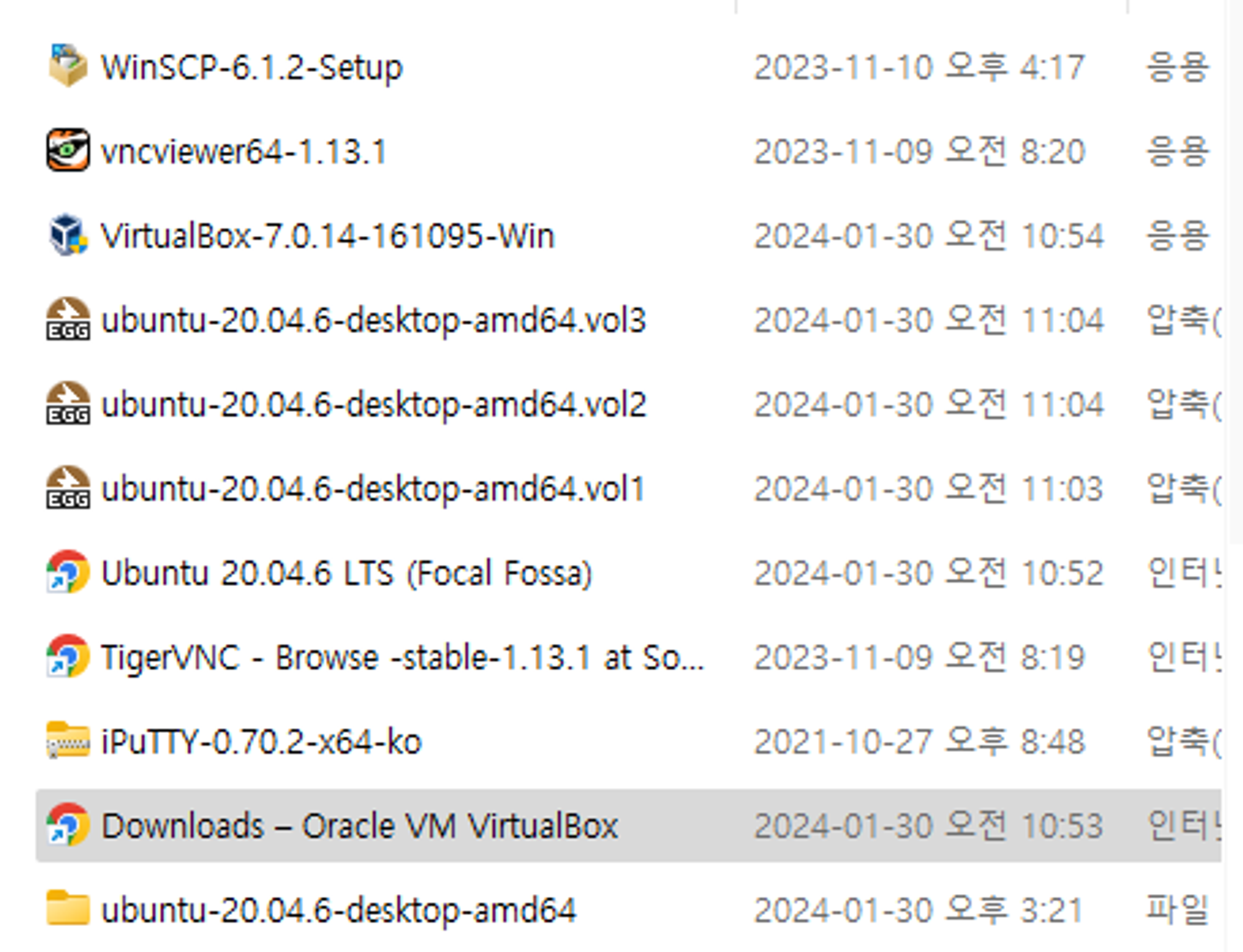 폴더로 받을거면 분할압축된 파일을 알집으로 풀어주고 .iso 확장자를 추가해 준다.