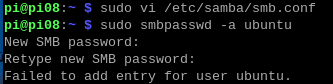 ~$ sudo smbpasswd -a ubuntu //접속 계정과 암호 설정